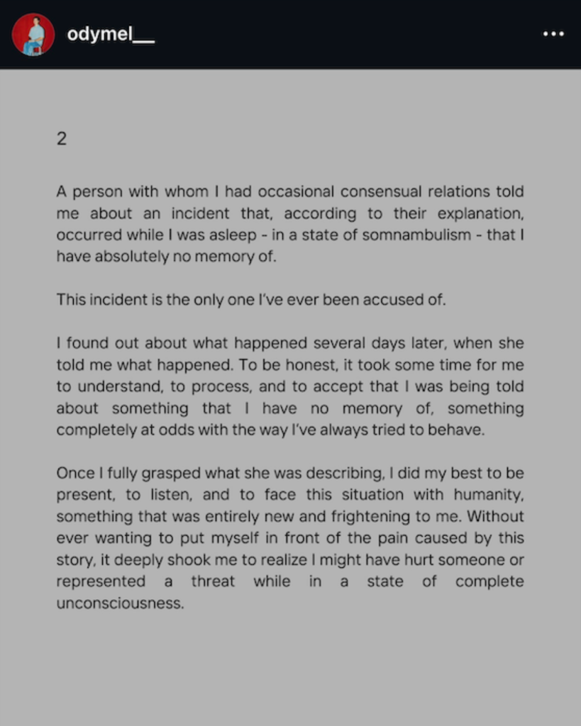 Odymel también señalado: alega “sexsomnia” (sonambulismo sexual), dice no recordar los hechos pero reconoce daño causado.